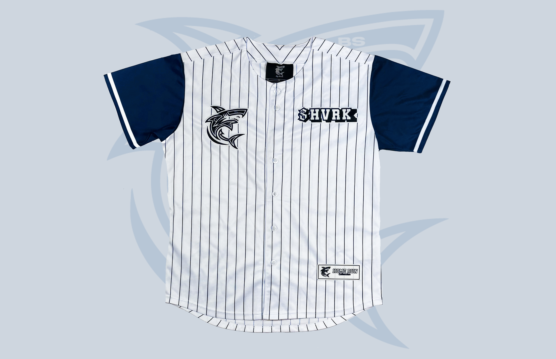 100% polyester unisex baseball top, with a shark and SHVRK inscription on the chest, and a label from the collection at the bottom of the jersey.